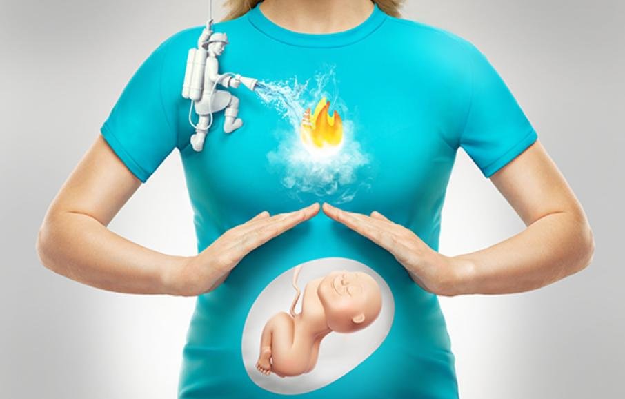 Ndërsa mitra juaj zmadhohet, veçanërisht pas rreth javës së 20-të ajo e shtyn stomakun lart kundër diafragmës, duke kondensuar përmbajtjen e stomakut dhe duke i ngritur ato në ezofang. Kjo mund të çojë në zbaticë acidi.