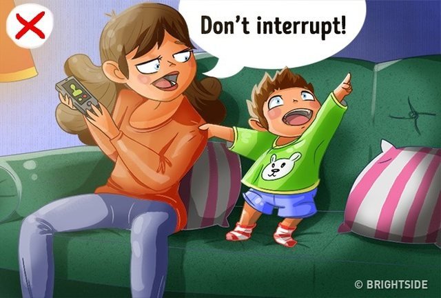 Mësoji fëmijës tuaj të presë për kthimin e përgjigjes gjatë një bisede çdo ditë në shtëpi, ose kur je në një darkë familjare apo je duke folur me kolegët e punës. Ju mund të bëni këtë veprim përpara se të telefoni dikë. Merrni telefonin në dorë, ndërkohë thuajini fëmijës suaj këtë frazë: “Unë do të flas në telefon tani, dhe nuk dua të më ndërpreësh. Unë do të përfundoj së foluri kur të kem hequr telefonin nga dora”.