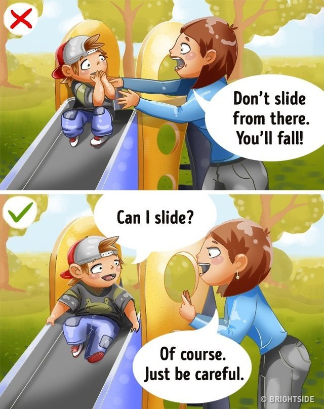 Një fëmijë që rritet shumë i frikësuar nga braktisja e prindërve, sidomos kur ata vendosin barriera mes tyre dhe aktiviteteve të zakonshme ka të ngjarë që të krijojë situata jo fort të këndshme. Kjo është arsyeja pse kur një prind i mirëkuptueshëm lejon fëmijën të shkojë lirisht në shesh lojërash, fëmija me siguri do të zgjedhë që të mos rrezikojë “jetën” për një kënaqësi momentale.