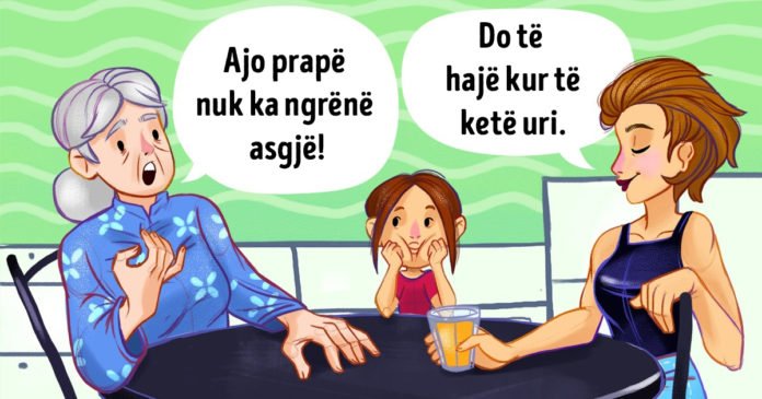 - Dhe kur doni t’i jepni fëmijës më shumë ushqim sesa ata në të vërtetë kanë nevojë, merrni pak kohë dhe mendoni: “Pse ta bëj këtë? A ka të bëje kjo me stereotipet e së kaluarës? A besoj unë se ne kurrë nuk duhet të lemë diçka në pjatë? A kam frikë se fëmija do të jetë ende i uritur? “Fëmija nuk është armik i vetes dhe ata kanë një lidhje të fortë me trupat e tyre. Ata do të hanë kur të jenë të uritur. Të ushqyerit me forcë nuk është mënyra më e mirë për të shprehur dashurinë prindërore.