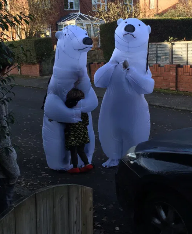 Të veshur si dy arinj polarë, me kostumet e bardhë, gjyshi dhe gjyshja u çmallën. Dhe e gjitha u organizua Ditën e Krishtlindjes, në Bramley në Angli.