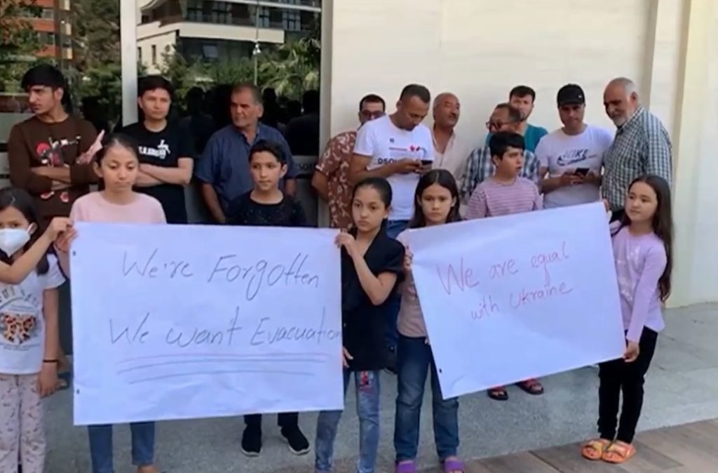 Vendi ynë mori një numër të madh të shtetasve afganë pas largimit të tyre nga Kabuli, por mesa duket qëndrimi i tyre në Shqipëri kaq e ka pasur pasi ata duan të largohen. “Amerika është përgjegjëse për ne”, “Duam të evakuuohemi”, shkruhet në pankarat e tyre.