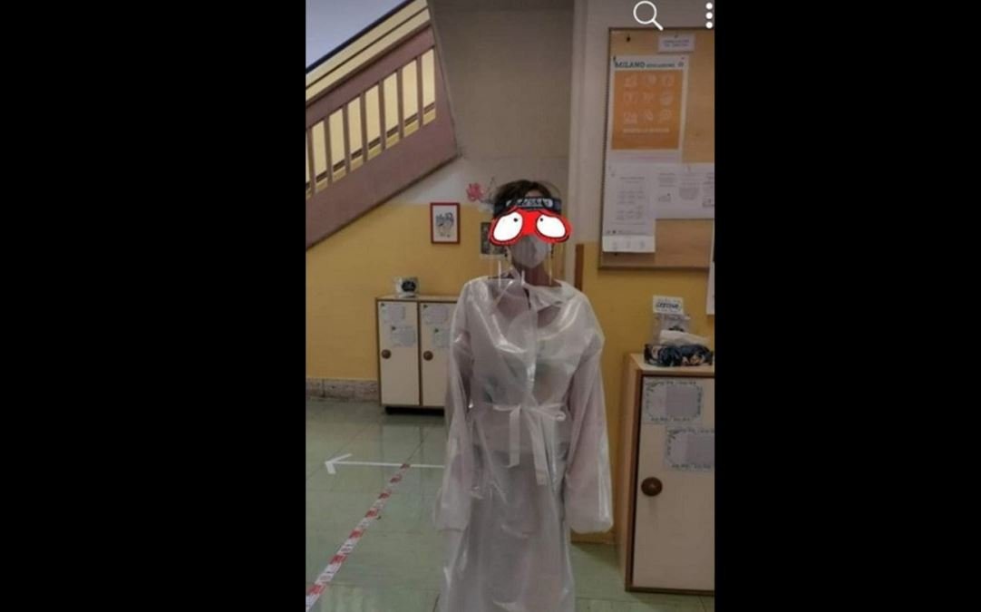 Në foto mund të shihni një prej edukatoreve që do të mirëpresë të vegjlit në kthimin e tyre në klasë dhe mbishkrimi që shoqëron foton, midis sarkazmës dhe denoncimit, shkruante.