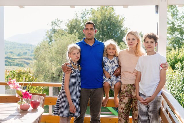 Familja Ndisi mblidhet për të bërë një fotografi, ku mungon Sibylla, një mace tipike shqiptare, të cilën e kanë shpëtuar nga rruga e do ta ndjekë familjen deri në Suedi. “Jemi katër goca dhe dy djem”, thotë me shaka Linalotta. Përfitoj nga rasti dhe i hedh një sy shtëpisë. Mobilim i thjeshtë, pa ngarkesa.