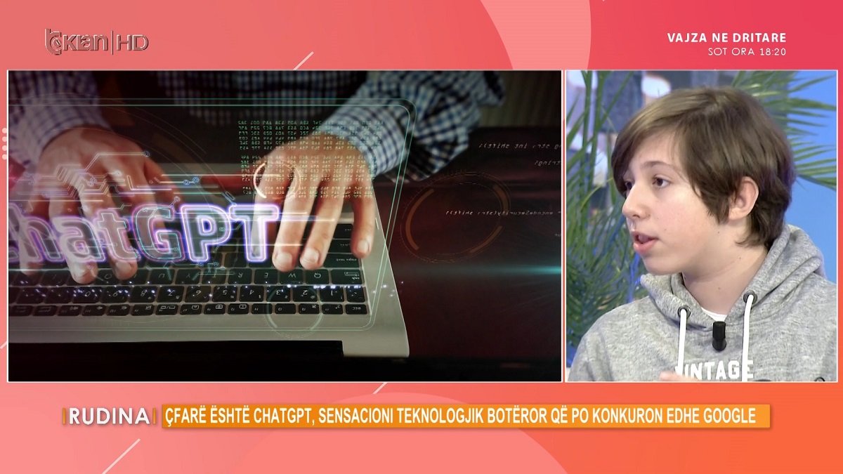 Chat GPT është risia më e fundit e inteligjencës artificiale e cila mund të grumbullojë informacion në kohë reale dhe ta përpunojë atë sipas kërkesave të përdoruesit. 12-vjeçari i apasionuar pas teknologjisë, Andrea Toska ka krijuar në fillim të muajit Janar një aplikacion të lidhur me ChatGPT i cili është falas. I ftuar këtë pasdite në “Rudina” në Tv Klan, Andrea shpjegon imtësisht si funksionon aplikacioni i tij.