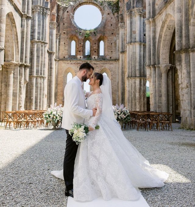Arbana Osmani dhe Eduart Grishaj kurorëzuan dashurinë e tyre disavjeçare në martesë në qershor. Çifti realizoi një ceremoni shumë private në Itali, me praninë e njerëzve më të dashur. Vetëm një foto kanë ndarë ata nga dasma e tyre ku çifti shfaqen duke u puthur teksa qëndrojnë vetëm para kishës.