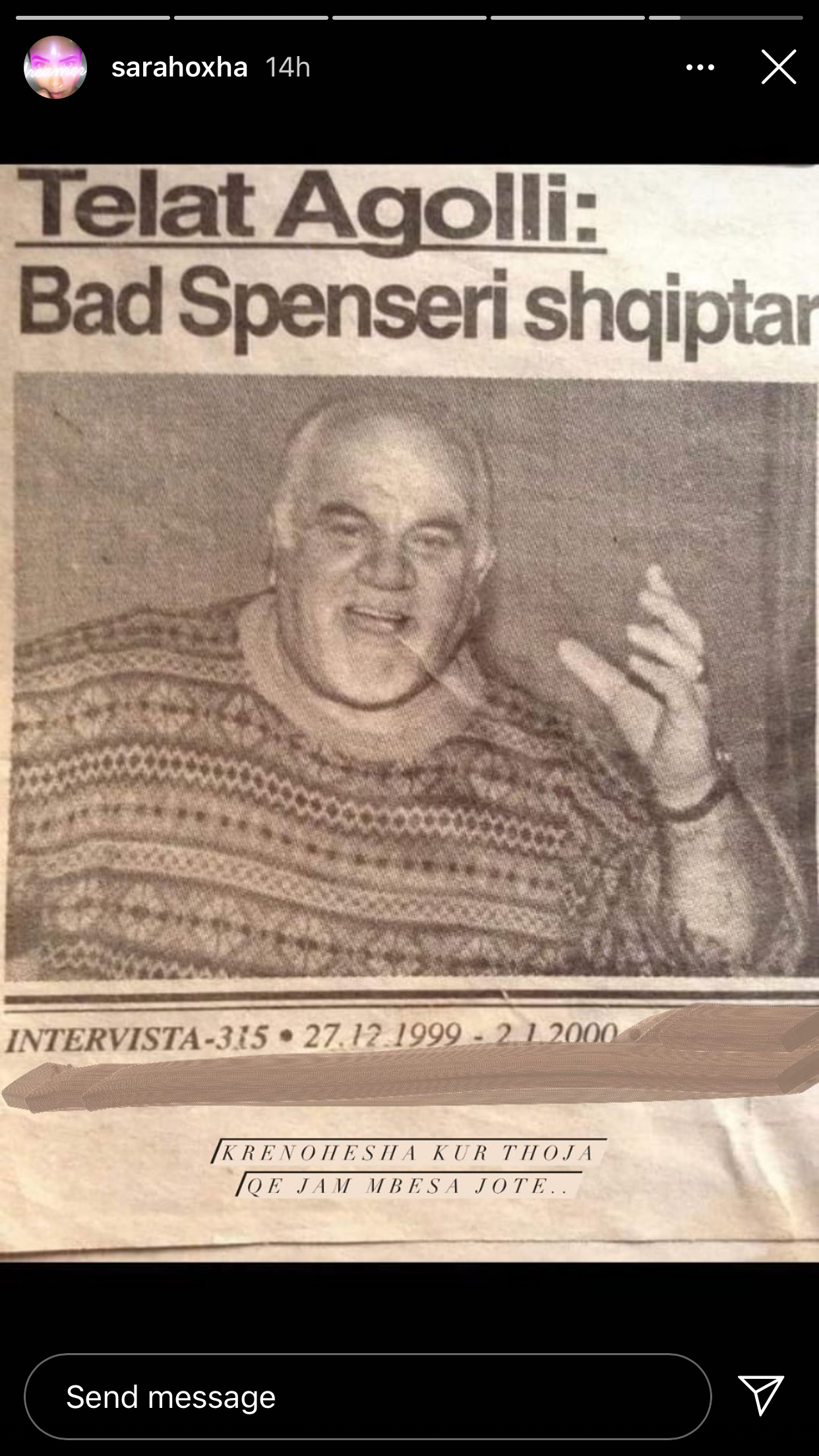 Përmes një postimi ajo ka treguar se ai ka qenë gjyshi i saj dhe e ka kujtuar me disa fjalë shumë prekëse. Sara ka publikuar në Instagram disa nga fotot ikonë të gjyshit të saj, nga koha kur ai punonte në Cirkun Kombëtar.
