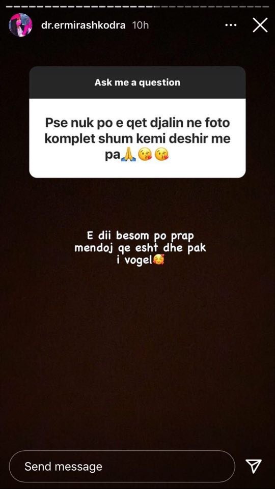 E arsyen e këtij veprimi e ka treguar sot Ermira në pyetësor, duke thënë se është ende pak i vogël le të rritet edhe pak.