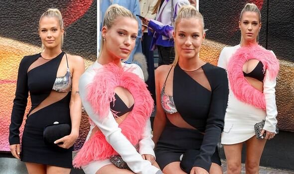 Ndërkohë binjakja e saj Eliza dukej mjaft në formë me një fustan të zi të shkurtër me panele rrjetë, i cili kishte njërën mëngë. Ashtu si motra e saj, Eliza, i kishte kapur flokët në një bisht elegant dhe i mbante gjërat e saj në një çantë të zezë.