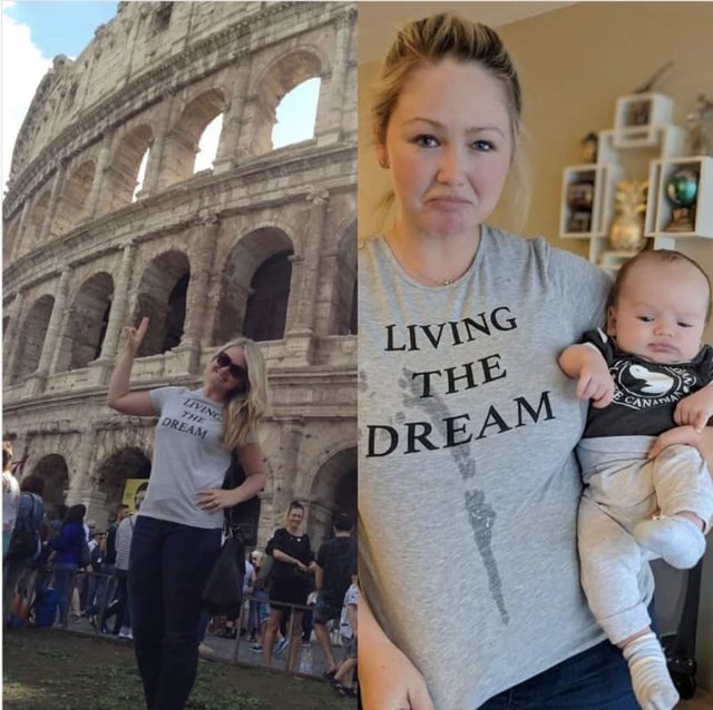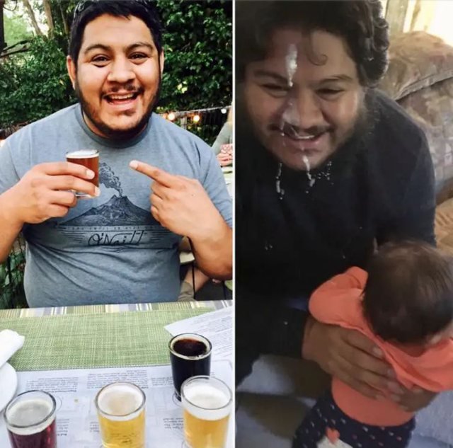 Ekziston një llogari në Instagram e quajtur Got Toddlered që poston foto para dhe pasi njerëz krejt të zakonshëm u bënë prindër. Poston perla si kjo sipër dhe kjo poshtë.