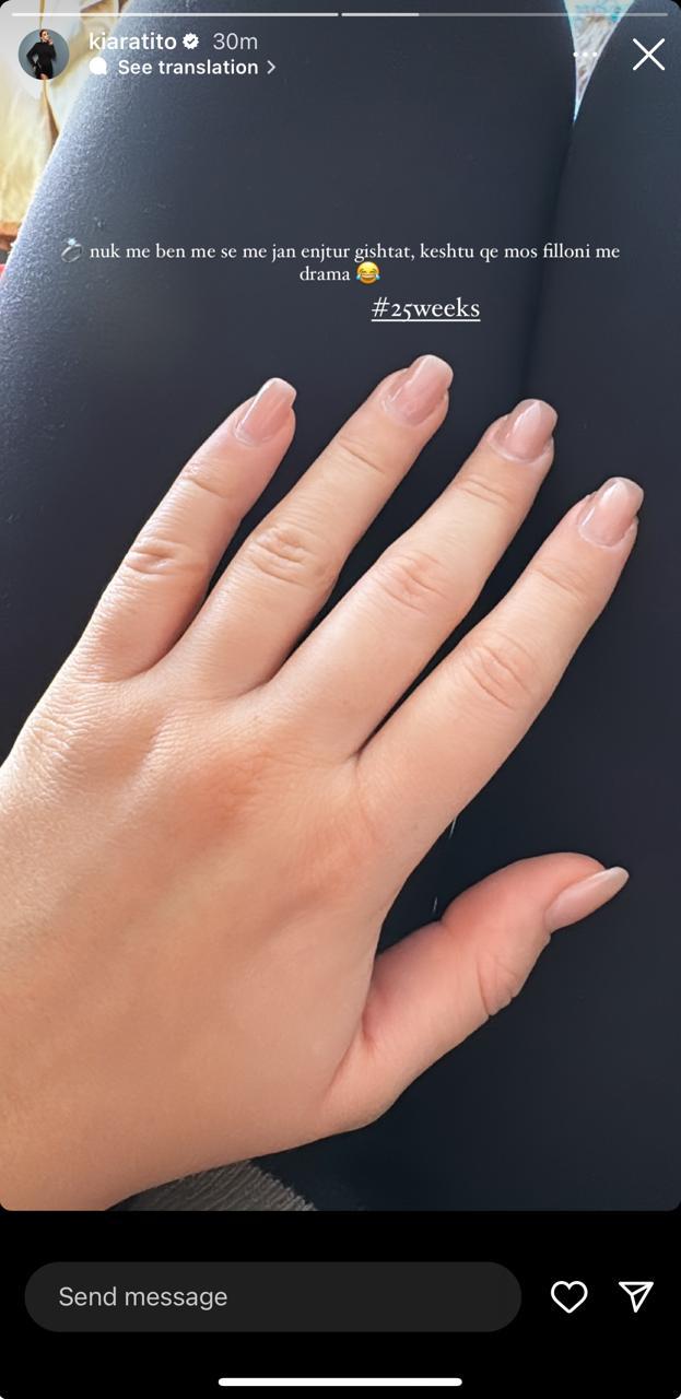 Moderatorja Kiara Tito po shijon ditët më të bukura të jetës, siç është shtatzania. Por bashkë me të vijnë edhe një sërë ‘problemesh’ fizike si enjtja e gishtave apo rrobat e ngushta. E njëjta gjë i ka ndodhur edhe Kiarës, ku për shkak të enjtjes së gishtave ka hequr unazën e martesës. Ajo ka ndarë me ndjekësit një foto pa unazë në dorë ku ka shkruar: