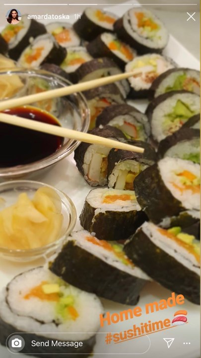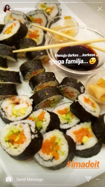 Një nga specialitet e Amit janë sushit dhe këtë moderatorja e ka treguar me anë të postimeve të ndryshme në llogarinë e saj në ‘Instagram’. Disa ditë më parë, ajo tregoi se nisi t’i përgatiste pasi pa se dhe Arbana po gatuante të njëjtën gjë.