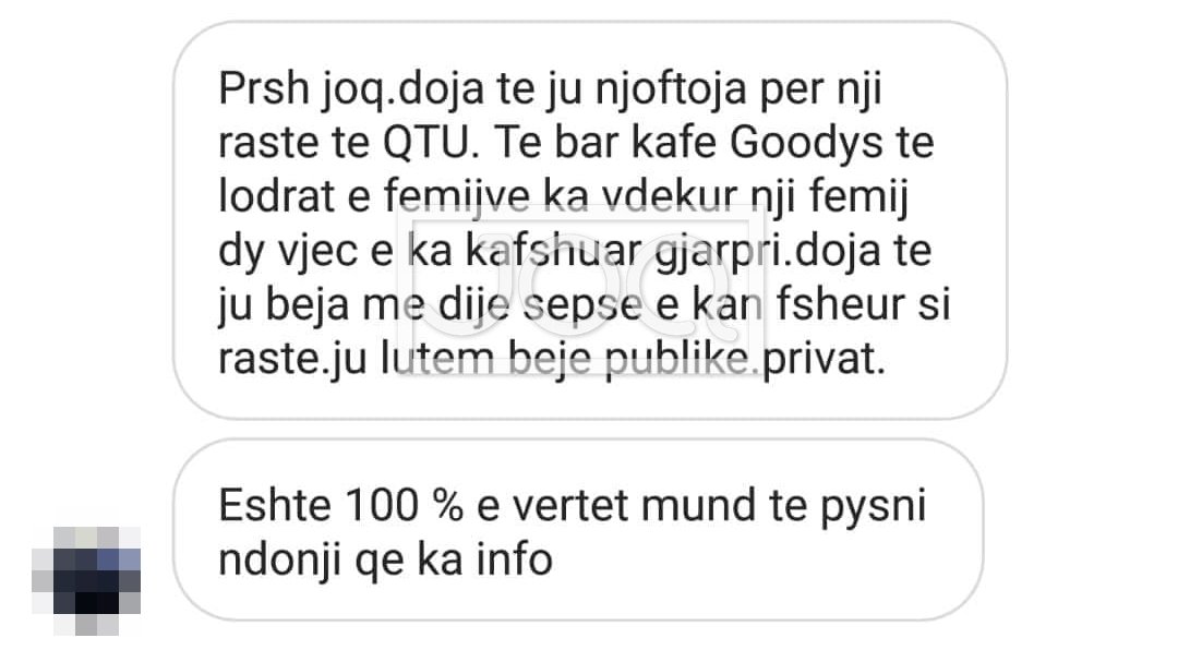 Ngjarja, raporton qytetari ka ndodhur në pjesën e jashtme të ambienteve të bar kafe Goodys, në QTU, pikërisht në pjesën ku ndodhen lojërat e fëmijëve.