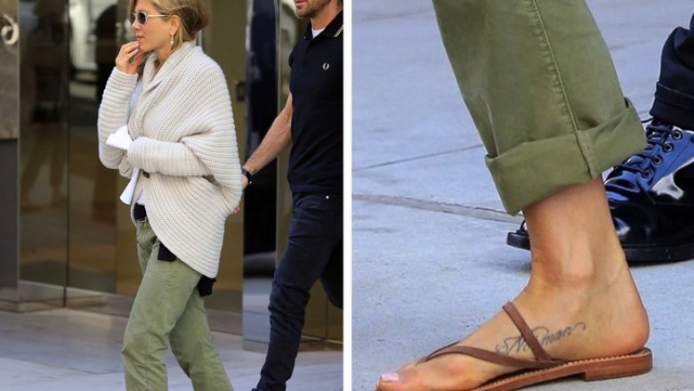 Për këtë tatuazh të parë të aktores, ajo bëri emrin e qenit të saj që kishte vdekur. Emri i tij ishte Norman. Anniston kishte një kohë të vështirë duke u përballur me humbjen dhe madje duke derdhur lot kur ajo po fliste për tatuazhistin e saj.