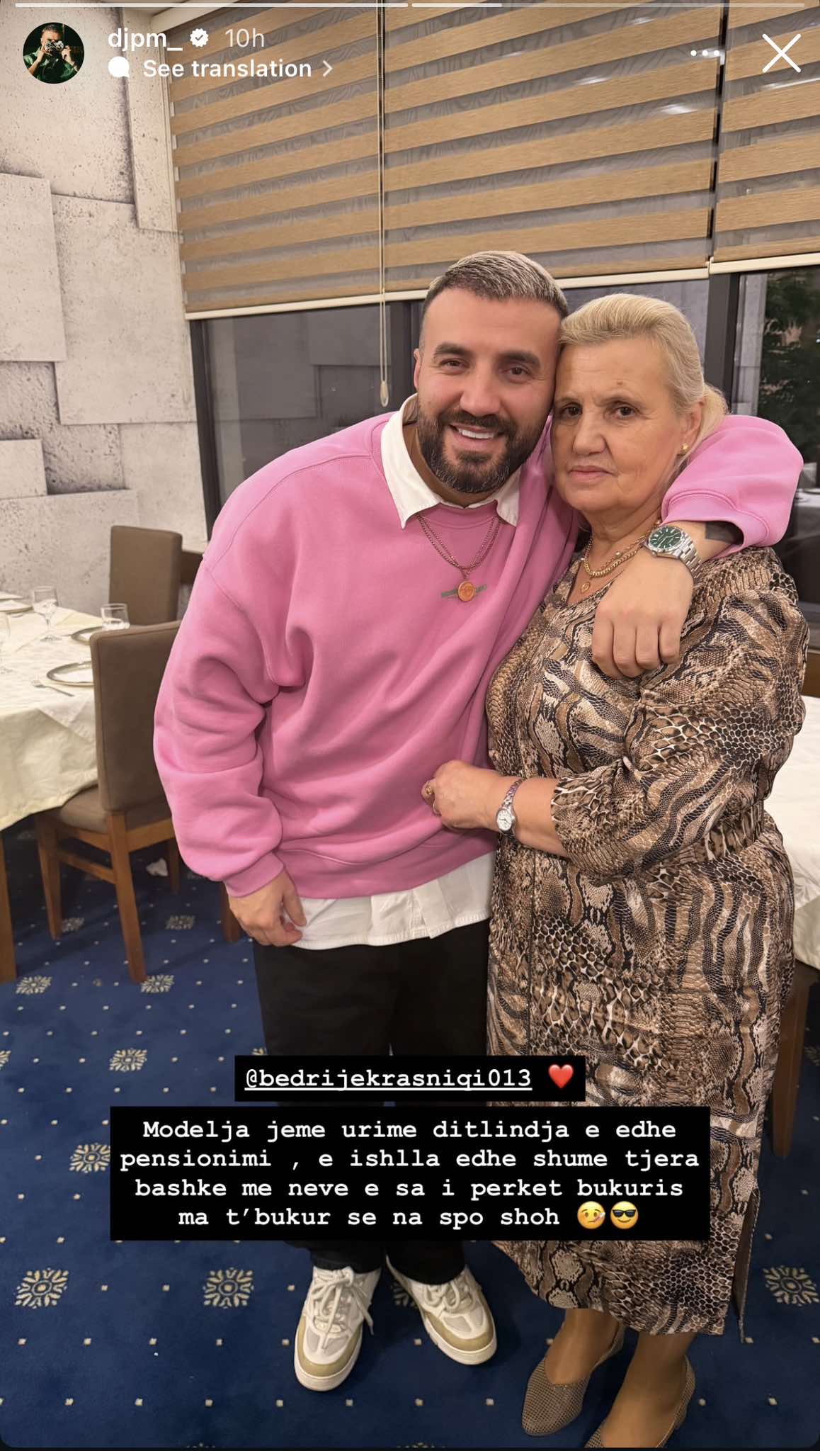 DJ PM ka ndarë në rrjete sociale një moment të veçantë familjar, duke uruar nënën e tij për ditëlindje dhe njëkohësisht për pensionimin.