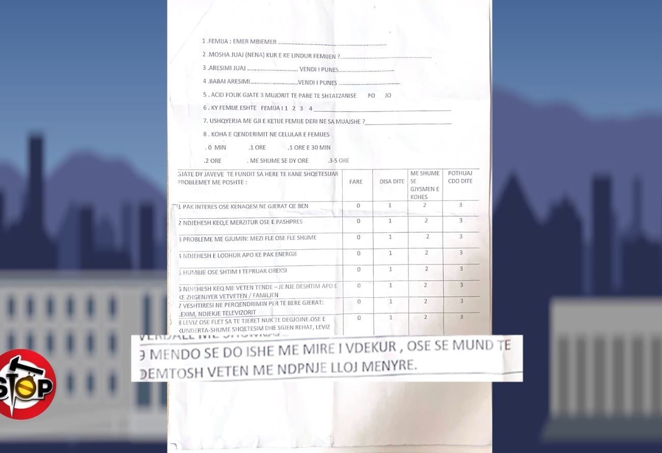 Në redaksinë tonë, një prind nga Vlora denoncon për një pyetësor që i është dhënë bashkëshortes së tij nga edukatorja, ditët e fundit.