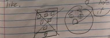 Njëri nga nxënësit vizatoi një celular me një kryq në mes dhe një fytyrë të mërzitur duke thënë: “ E urrej telefonin”.