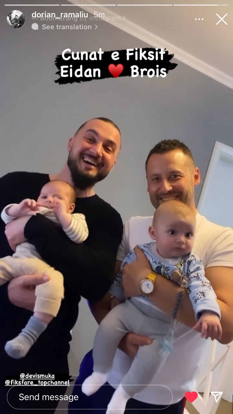 Sot moderatorë të “Fiks Fare” dhe baballarë të dy vogëlushëve që me siguri do të jenë shokë po si ata. Ka qenë Dori ai i cili ka publikuar një foto me djemtë në krahë.