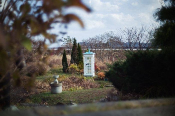 Ishte një gazetar kureshtar që e pikasi i pari vite më parë kabinën në kopshtin e bukur. Për shkak të lartësisë mbi shkëmb, vala e lartë e cunamit të 11 marsit të vitit 2011 e kurseu kopshtin, por jo mbi 15 mijë japonezët të përfshirë nga tmerri i ujit. Nga ajo kohë, kjo kabinë është pjesë e paqes shpirtërore e mijëra njerëzve, që vijnë aty të flasin me të munguarit.