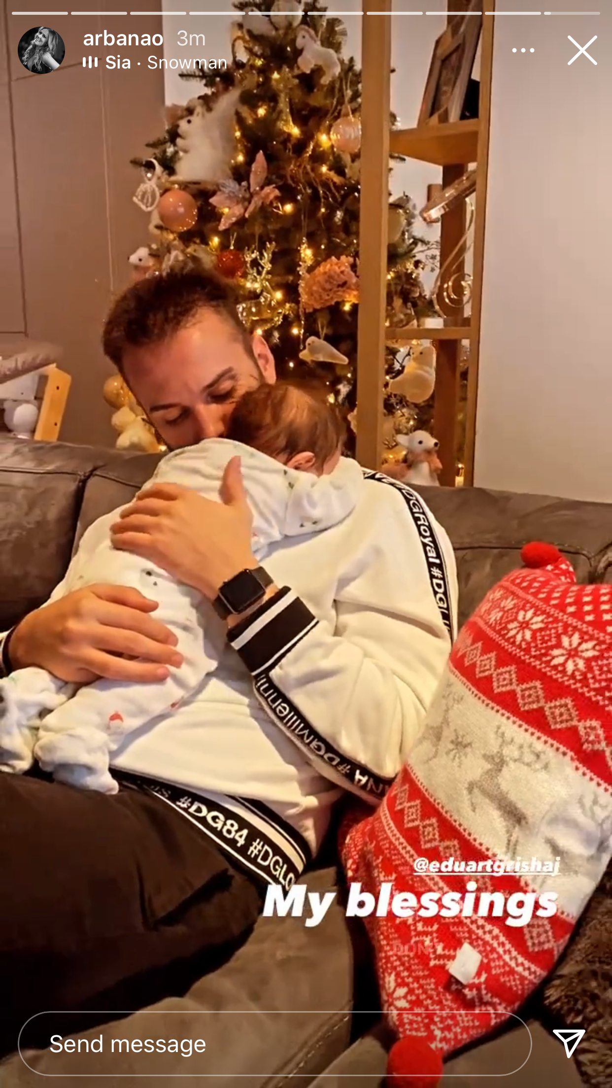 Duke u përkëdhelur në gjoksin e babit, Arbana na mbushi zemrat me videon e Eduartit dhe Diellit