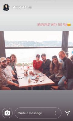Ditën e djeshme në media qarkulloi lajmi se partneri i prezantueses së “Dancing With The Stars”, Tolgahan ishte shtruar në spital në gjendje të rendë, për shkak të një sëmundje. Almeda i hodhi poshtë këto fjalë, teksa tregoi për revistën “Who” se ai kishte thjesht këputje për shkak të një vaksine mbrojtëse. Sot duket se gjendja e tij shëndetësore është për mrekulli dhe po kalon momente të lumtura pranë bukuroshes së tij, miqve dhe familjarëve. Këtë e tregon një foto e postuar në ‘Instagram’ nga Almeda e cila shkruan: “Mëngjes me familjen”. Pamja që të ofron kjo foto është mahnitëse.