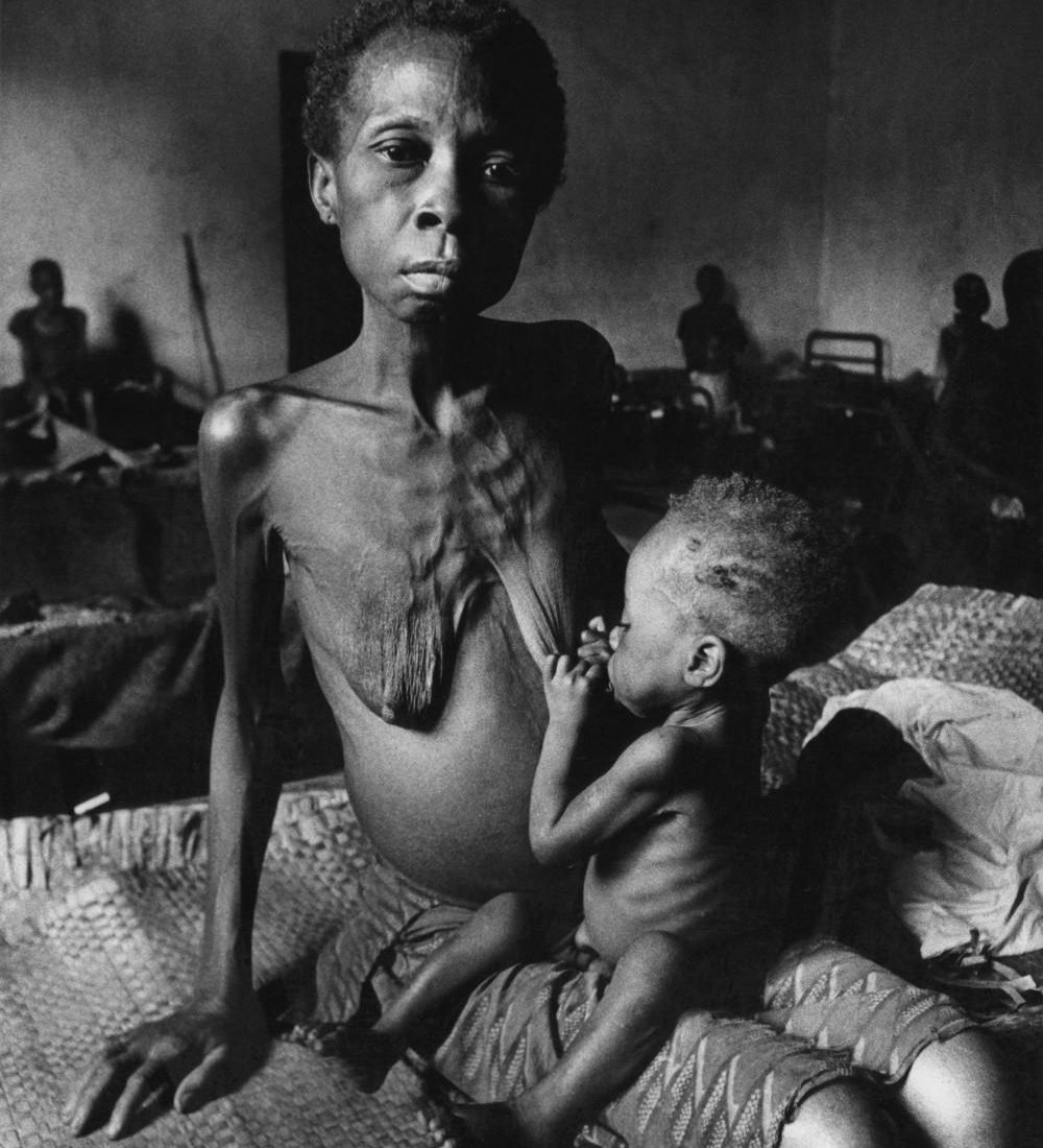 Me siguri e keni hasur këtë foto në rrjetet sociale, ose ndoshta kjo është hera e parë që e shihni. Bëhet fjalë për një foto të shkrepur nga fotografi Don Mçullin, i cili u ka kushtuar një vëmendje të veçantë momenteve të trishta të luftës së Biafras (luftë civile ndërmjet qeverisë së Nigerisë dhe Republikës së Biafrës). Në vetëm tri vite (1967 – 1970) në këtë luftë vdiqën më tepër se një million njerëz. Shpërndarja e ushqimeve u kufizua shumë në rajonin e Biafrës, duke shkaktuar uri ekstreme dhe vdekje të shumta.