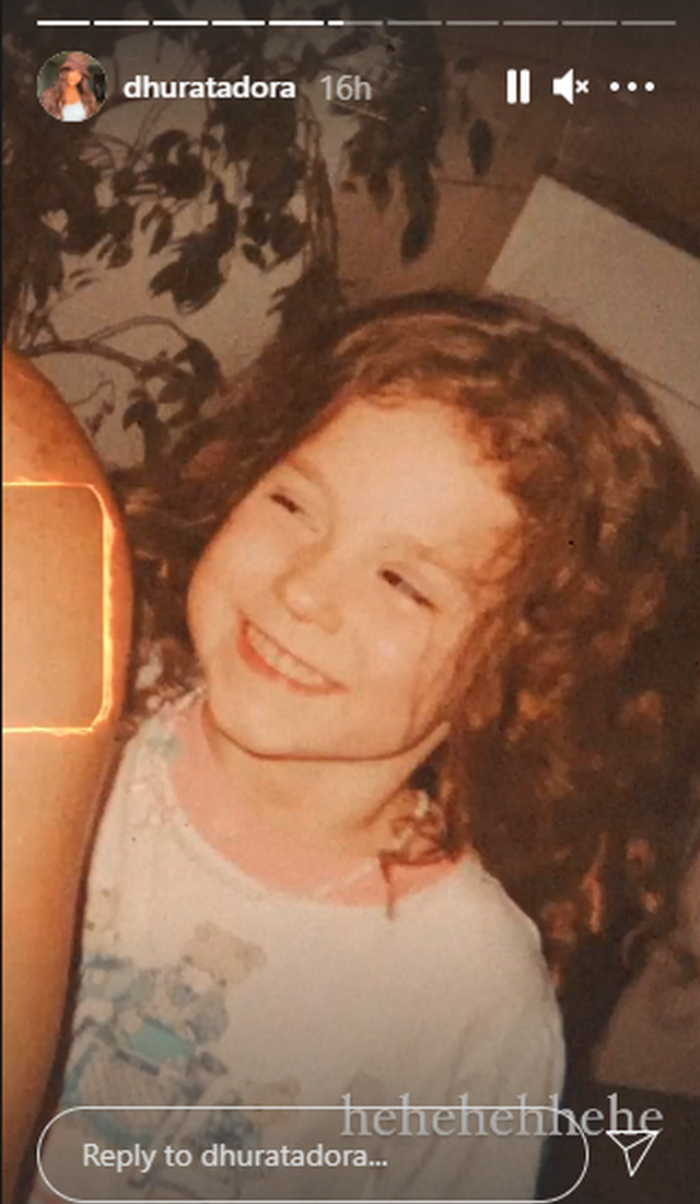 Ajo ka publikuar në Instastory një foto të rrallë nga fëmijëria. Dhurata shihet me flokë disi kaçurrela në ngjyrë çokollate dhe me një buzëqeshje të madhe në fytyrë.