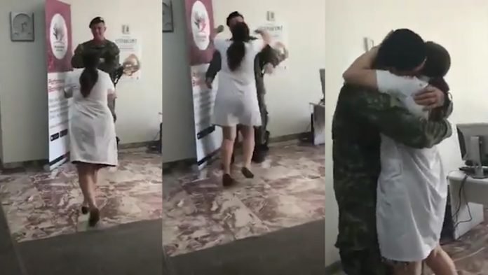 Teksa pa të birin me rroba ushtarake, ajo harroi çdo gjë dhe me lot në sy u hodh në krah të tij, duke e përfaqur dhe duke shpërthyer në lot.