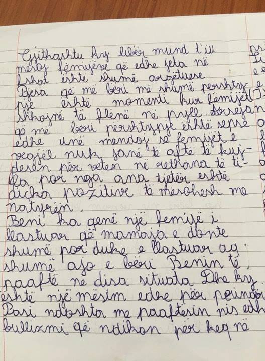 Emocionuese/ Vogëlushja 10-vjeçare shkruan një letër për BENIN e Kiço Blushit