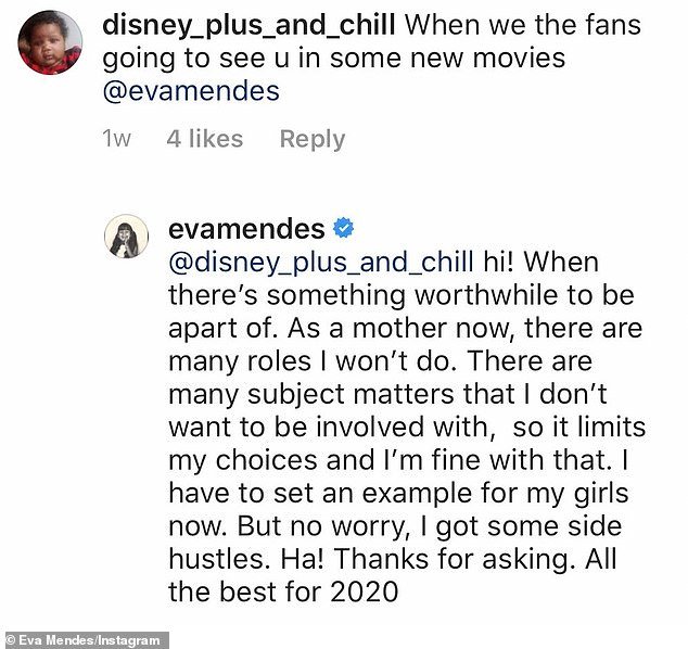 Së fundmi, ajo ka zbuluar për një fans se nuk ka shumë role të cilat i përshtaten dhe për këtë arsye ka vendosur të bëjë një pushim.