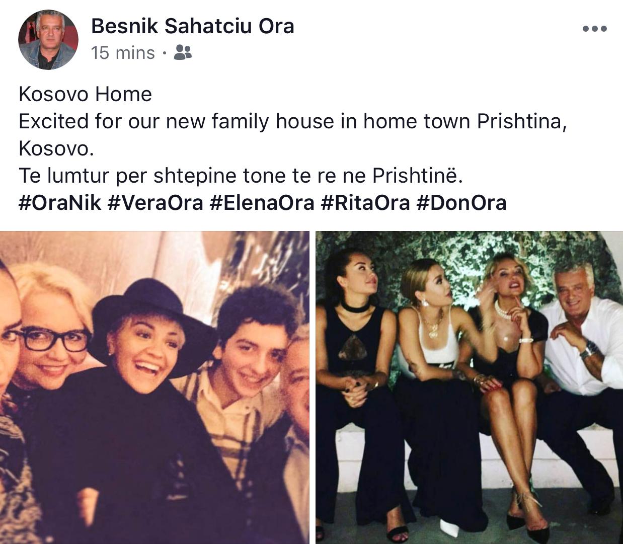 Pak minuta më parë Besnik Ora, babai i këngëtares me famë botërore ka zbuluar se së fundmi kanë blerë shtëpi në Kosovë. “Kosovë, shtëpi. Shumë të emocionuar për shtëpinë e re në Kosovë, Prishtinë”,-shkruan Besniku krahas fotove familjare.