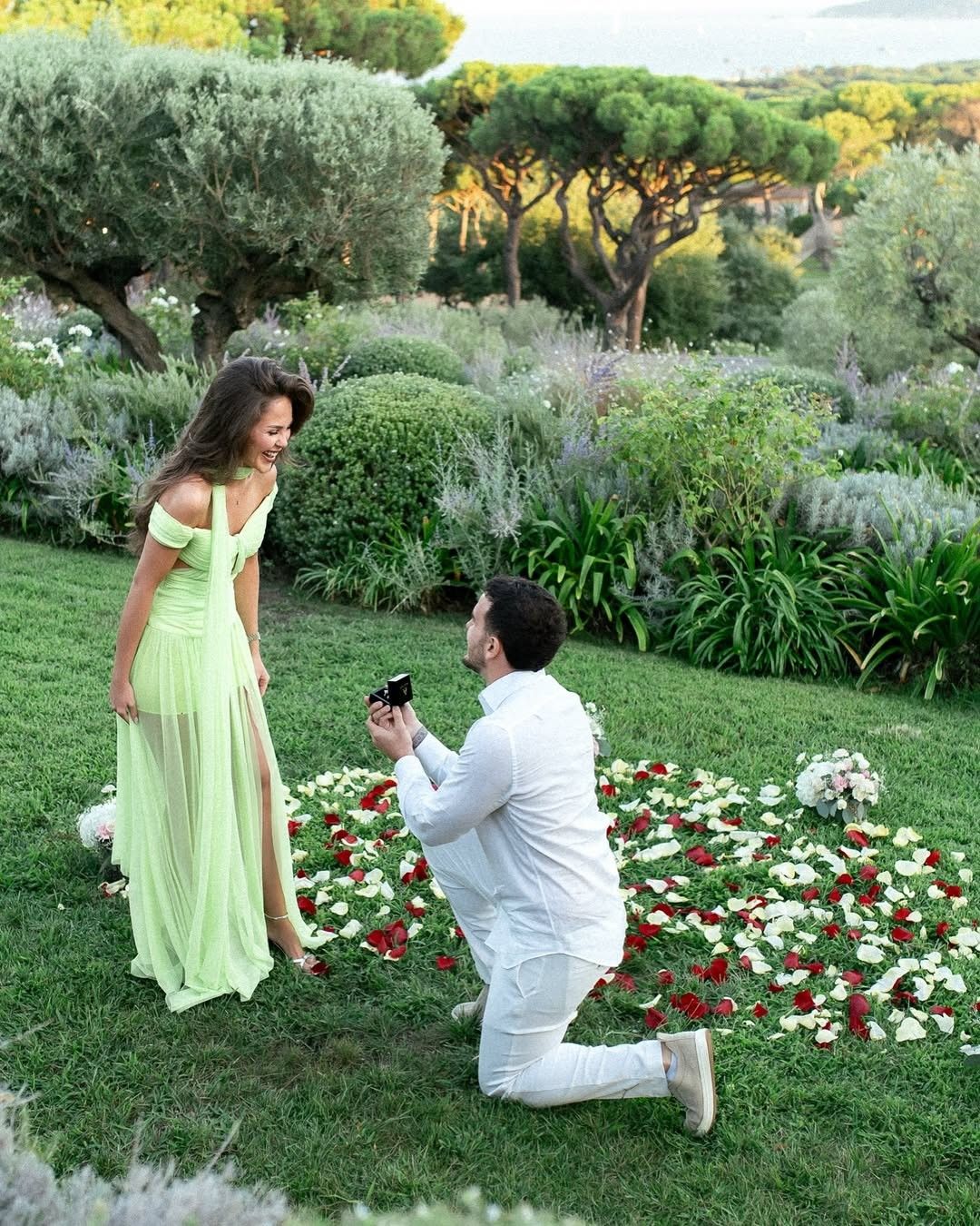 Fejesa e çiftit ndodhi në një ambient përrallor në natyrë, në qytetin luksoz të Saint-Tropez, në jug të Francës.