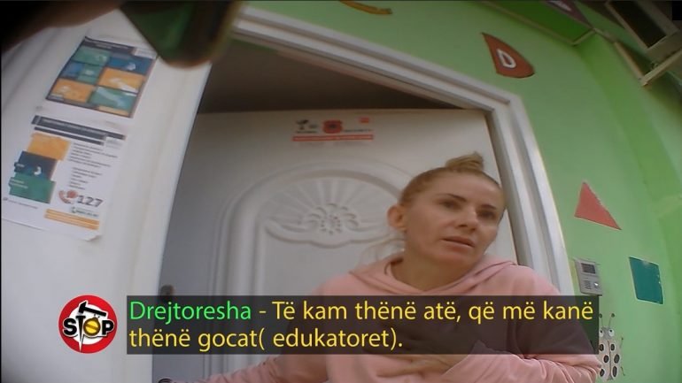 Nëpërmjet kamerës së fshehtë, nëna i drejtohet çerdhes, ku drejtoresha i kërkon ndjesë, duke i thënë se tani do t’i rrijë në kokë fëmijës.