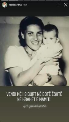 “Vendi më i sigurt në botë është në krahët e mamit. 40 vjet më parë”, ka shkruar Dardha krah fotos së fundit e cila duhet t’i ketë zgjuar shumë kujtime.