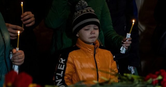 Një foto prekëse është duke qarkulluar në rrjet, ku një djalë i vogël i quajtur Mikhail nga Ukraina, shfaqet duke qarë përballë arkivolit të motrës dhe vëllait të tij të vrarë.