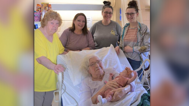 MaeDell, 98-vjeçare, ka jetuar aq gjatë sa ta takojë stër-stër-stër-stërmbesën e saj shtatëjavëshe.