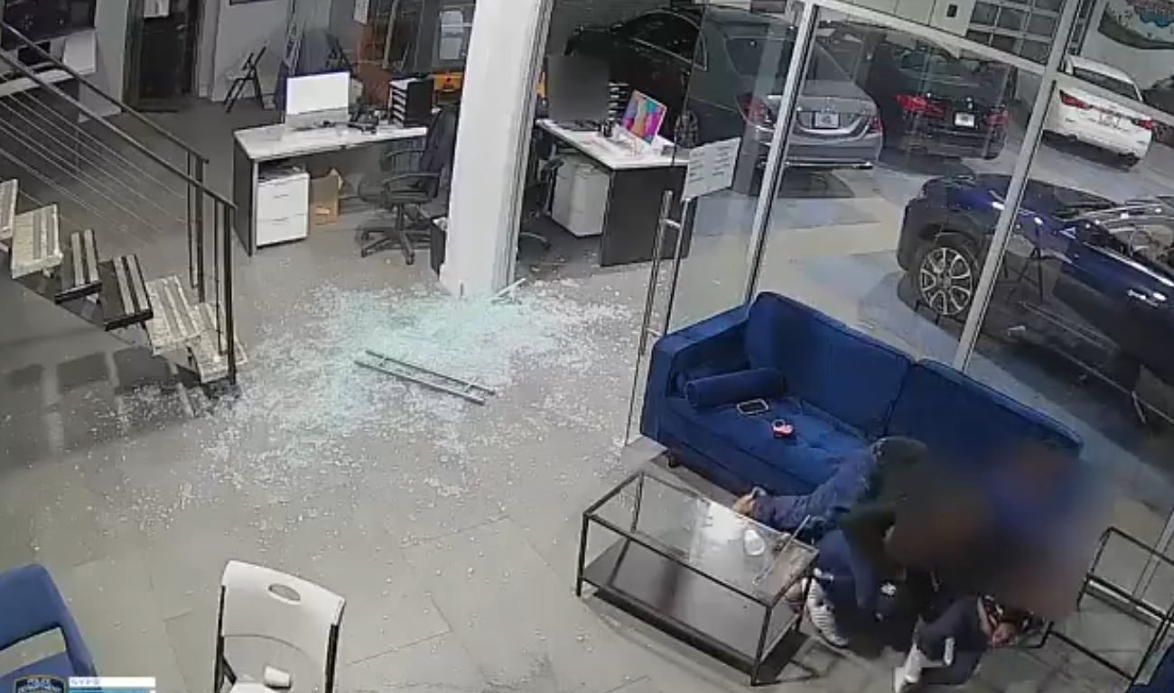 Në video vihet re një person i armatosur i cili hap zjarr në një dyqan makinash të përdorura. Babai 39-vjeçar, i cili po qëndronte i ulur në një divan bashkë me fëmijët e tij, hidhet menjëherë mbi to për t’i shpëtuar nga plumbat.