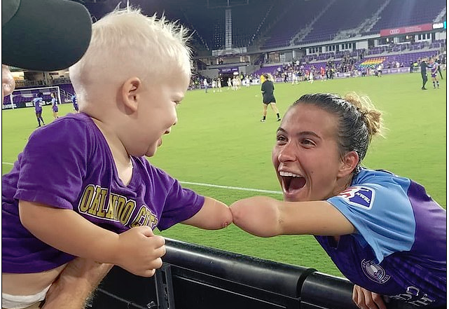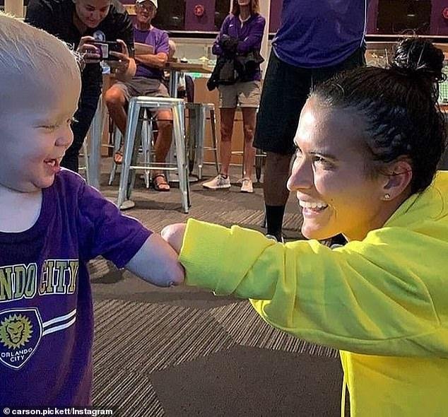 Joseph Tidd, i cili është një djalosh 18-muajsh nga Florida, ishte i buzëqeshur kur u përshëndet me Carson Pickett, e cila luan për Brisbane Roar në W-League të Australisë dhe Orlando Pride.
