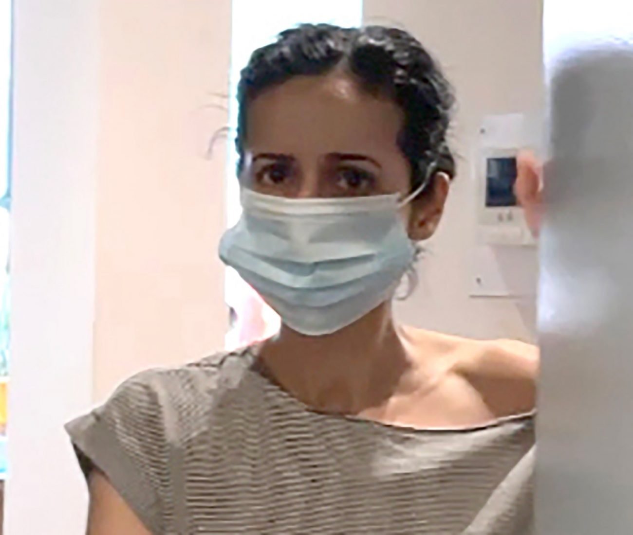 Mariam Ghani, vajza 42-vjeçe e Presidentit afgan Ashraf Ghani, i përplas derën gazetarit dhe fotografit të New York Post në apartamentin e saj në Brooklyn.