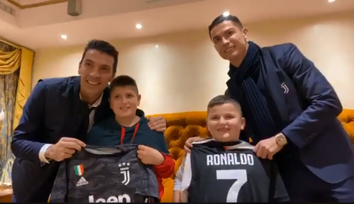 Alesio dhe Aureli, dy të miturit të cilët i mbijetuan tërmetit shkatërrimtar të 26 nëntorit, kanë takuar sot idhujt e tyre në futboll, Cristiano Ronaldo dhe Gianluigi Buffon.