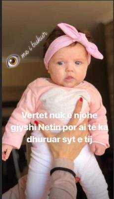 Jona Kalemaj, ish-banore e ‘Big Brother 7’, me gjithë vështirësitë që kishte kaluar në jetë, me vdekjen e babait dhe të dashurit, fitoi dashurinë e publikut dhe arriti të shkojë deri në finale. Megjithatë çdo dhimbje Jona arriti ta kthejë në forcë dhe vendosi të ecte përpara duke krijuar familjen e saj. Tashmë ajo është nënë e dy vajzave të mrekullueshme. Vajza e vogël, Santa, është rritur mjaftueshëm dhe është bërë një vajzë shumë e bukur. Jona nëpërmjet një postimi në ‘Instagram’ ka treguar se ajo ka marrë sytë e të atit të saj. ‘Vërtet nuk e njohe gjyshi Netin, po ai të ka dhuruar sytë e tij’, ka shkruar Jona në foton e vajzës së saj.