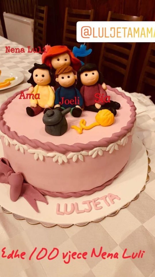 Ndërsa pamë tortën e zonjës, vëmë re se ajo është dekoruar me miniaturat e nipërve të saj.