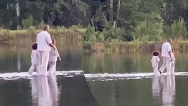 Kanye West shfaqet me dy fëmijët e tij duke ecur mbi ujë, riti i fesë që ndjekin…
