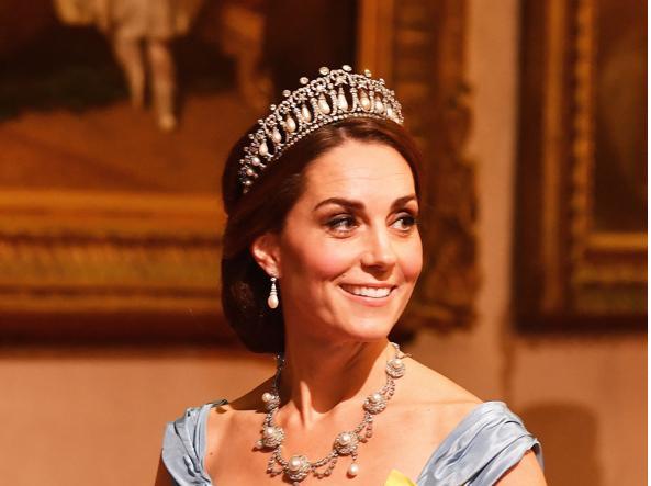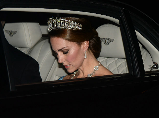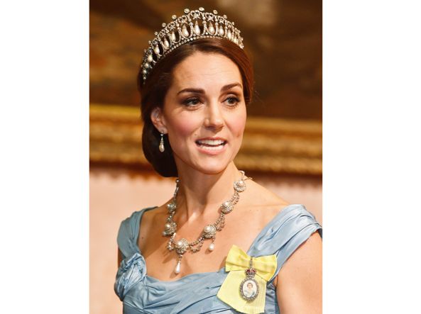 Ajo që bie në sy gjatë takimit ishte se dukesha e Cambridge kishte vendosur në kokë kurorën e princeshës, Diana. Kurora me perla dhe diamant iu dhuruan princeshës nga mbretëresha Elisabeth me rastin e martesës së saj me princin, Charl në vitin 1981.