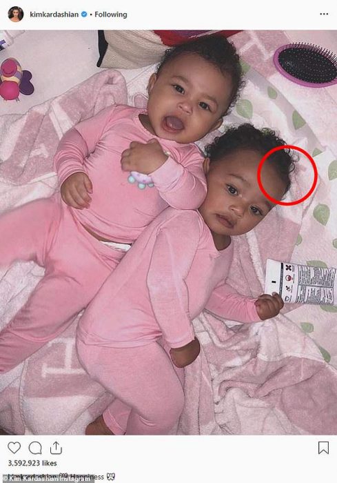 Pak ditë më parë Kylie Jenner dhe Kim Kardashian publikuan një fotografi shumë të ëmbël të dy vogëlusheve të tyre, Stormi dhe Chicago. Pavarësisht se në foton e dy vajzave nuk dukej asnjë lloj problemi, fansat kanë kuptuar se në foton e Kim ka disa ndryshime. Kim ka vendosur të ndërhyjë edhe në pamjen e vajzës së saj, sepse duket një ndryshim i lehtë në pjesën e djathtë të ballit dhe të kaçurrelat e vogëlushes. Gjithashtu ajo ka ndryshuar edhe ngjyrën e lëkurës së Chicago dhe Stormit.