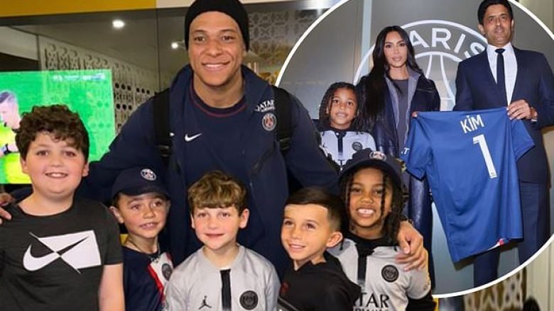 Kim Kardashian dhe djali i saj takohen me Mbappen dhe marrin fanellë të personalizuar nga PSG