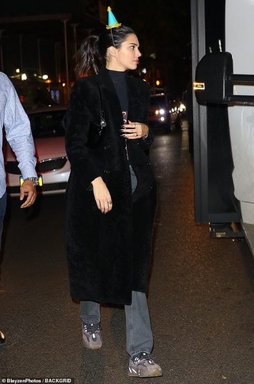 Për ditëlindjen e saj, Kendall i habiti të gjithë, sepse ishte veshur shumë thjesht dhe kishte bërë një grim shumë natyral. Ajo mbante veshur një xhaketë të gjatë të zezë, një palë xhinse dhe atlete.