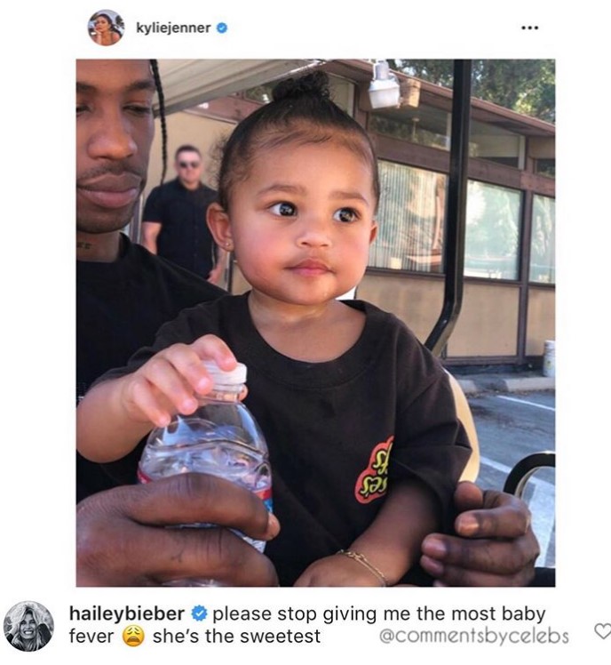 Kylie Jenner e ka ‘çmendur’ rrjetin me fotot më të ëmbla të vajzës së saj, Stormi. Ajo zbuloi se dita e djeshme ju dedikua së voglës dhe bashkë me partnerin e saj u nisën për një aventurë të bukur në natyrë. Sigurisht që komentet në postimin në fjalë qenë të shumta dhe të gjithë shkruajtën fjalët më të ëmbla për të voglën e cila po rritet çdo ditë e më shumë. Megjithatë vëmendjen e mori edhe një detaj tjetër. Hailey Baldwin është prekur shumë nga ky postim dhe po mendon seriozisht që të bëhet nënë duke parë të voglën e yllit televiziv.