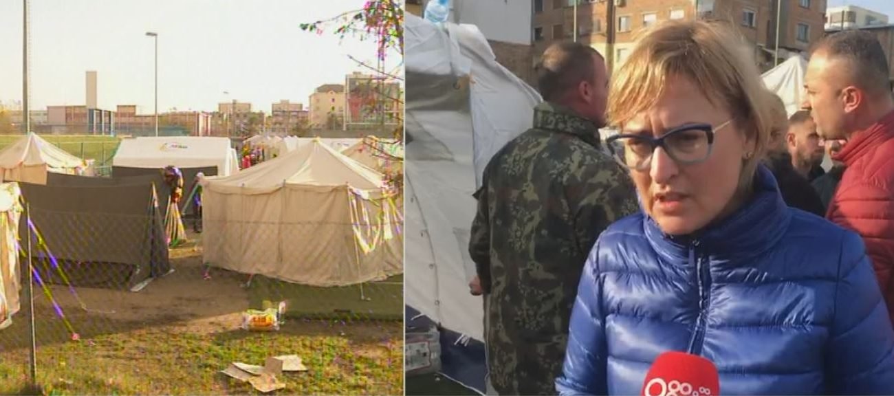 Valbona Sako: “Jo se nuk ka çadra. Njerëzit nuk pranojnë të hyjnë në çadra. Bëjnë zgjedhje individuale për të mos qenë bashkë me familjet e tjera. Këtu ka mjaftueshëm çadra, ka më shumë se 200. Është pjesa tjetër e instaluar që ka mbaruar mbrëmë në mesnatë. Ushqime ka mjaftueshëm.