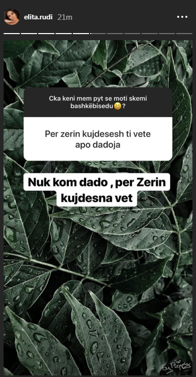 Këtë pyetje ja kanë bërë ndjekësit moderatores përmes opsionit pyetje/përgjigje në Instagram dhe Elita nuk nguroi të përgjigjej.